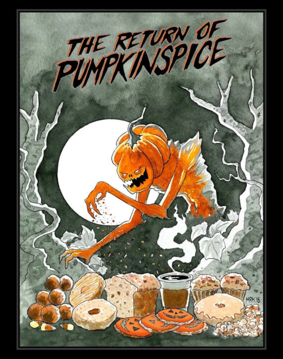 I made this funny illustration five years ago poking fun at this phenomenon. I call it “The Return of Pumpkinspice.” I posted about it here on my blog.