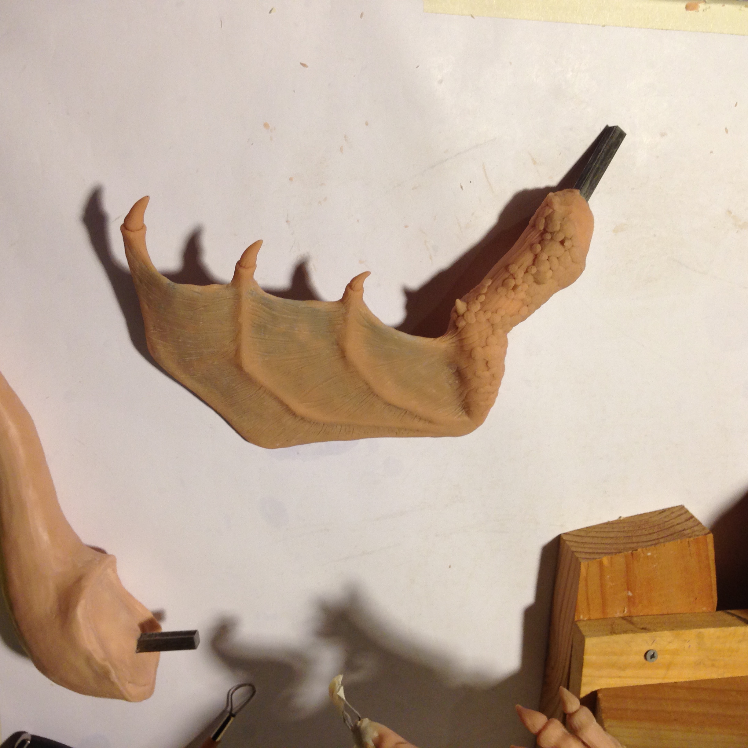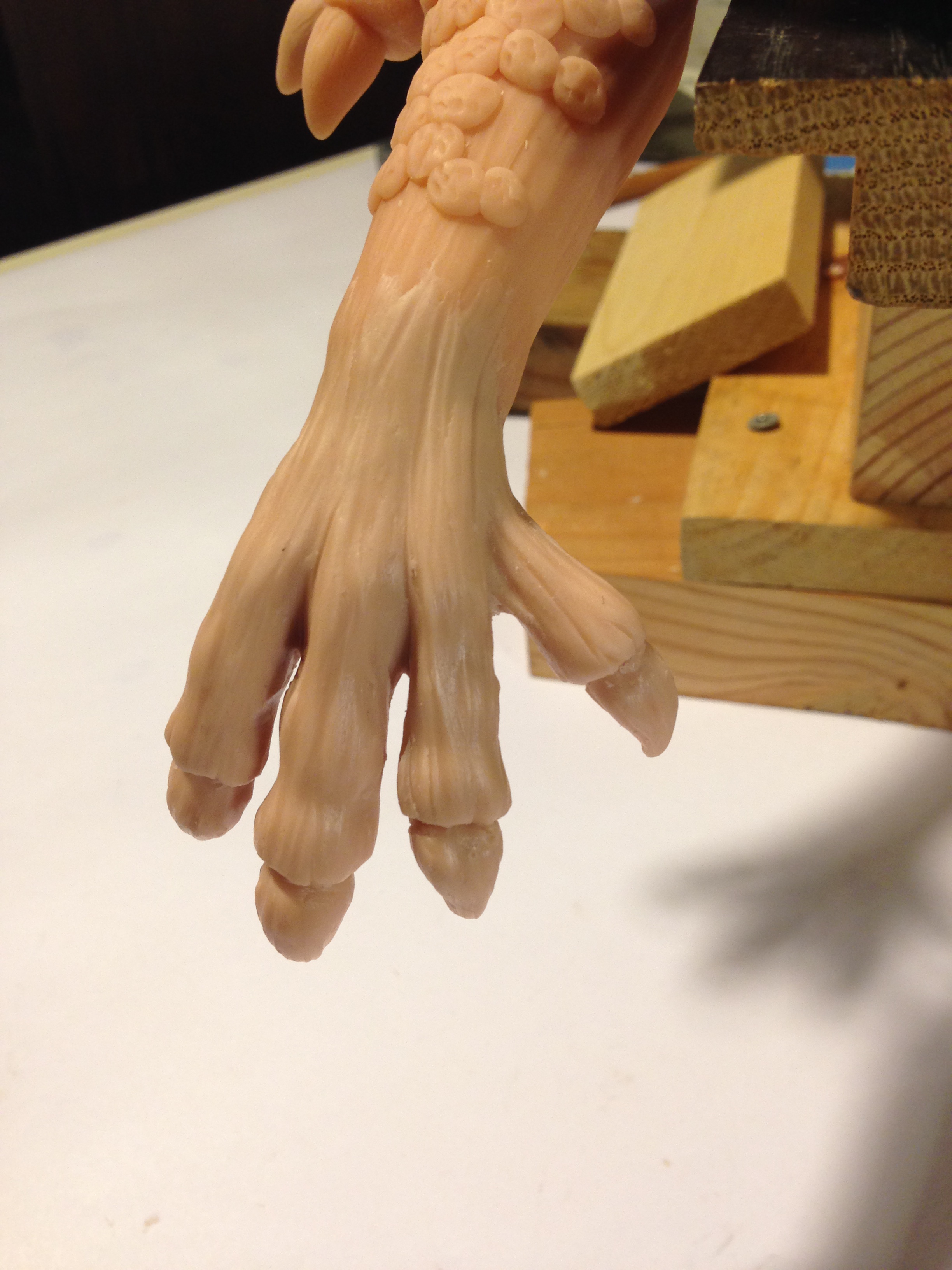 I began the final layer of Super Sculpey on a back leg, just in case it didn’t come out quite right. I was pleased with the outcome, the look of the scales and skin, and did the rest the same way.